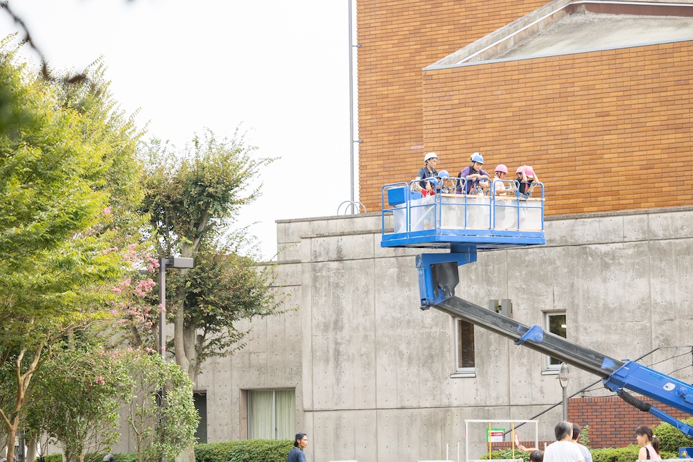 高所作業車への乗車やミニ上棟式など、家づくりの現場をリアルに体験。未来の建築士・大工が誕生するかも?