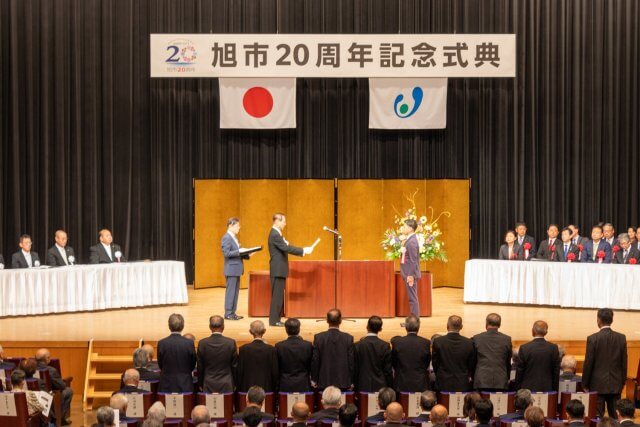 2025年11月1日、旭市市制施行20周年を記念する式典が、東総文化会館にて開催されました。式典では千葉県副知事をはじめ、国会議員・県議会議員・市議会議員・各機関代表者が参列。司会者の方が「100名以上のお名前を読み上げましたが、そこに旭市の歴史が詰まっていた」と語られたように、市民とともに歩んだ20年を象徴する温かく厳粛な式典でした。